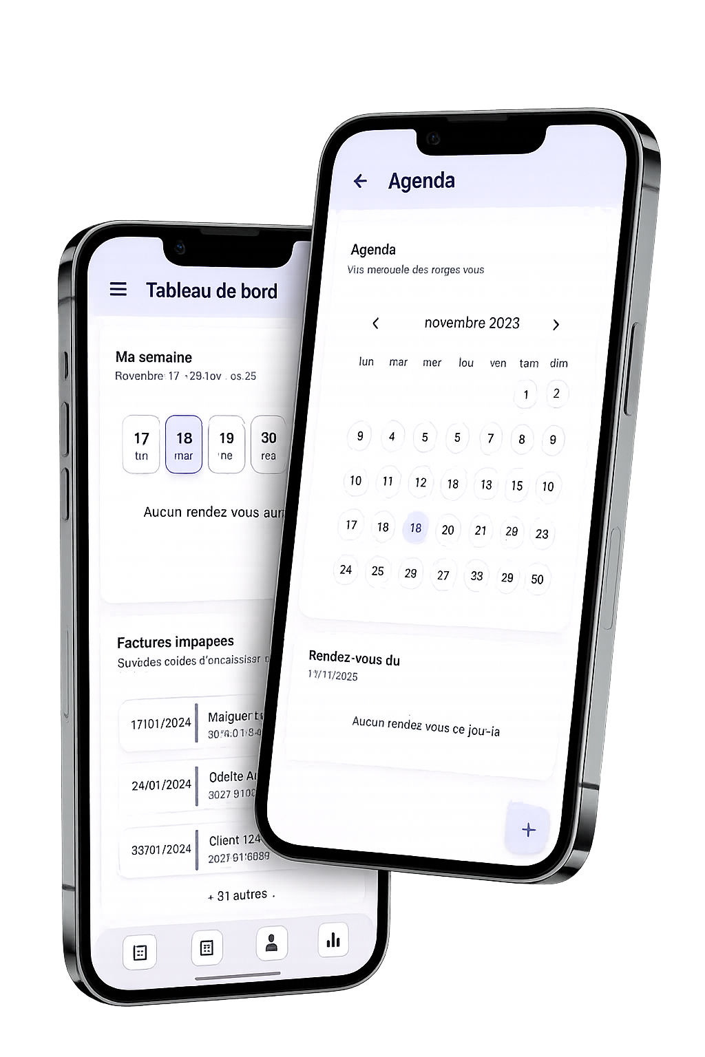 Une seule application pour l’agenda, les clients, la facturation et le suivi d’activité. Conçu pour les indépendants qui veulent une gestion simple, rapide et fiable.
